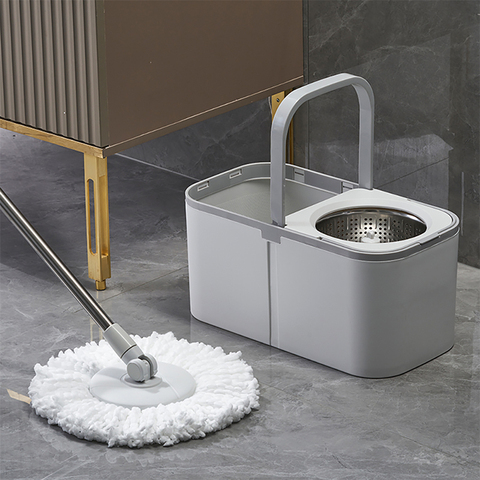 Fabricante Durable Rotary Mop Bucket Set 360 grados Rotación Doble unidad Hogar Manos libres Equipo de limpieza 2 Mopheads